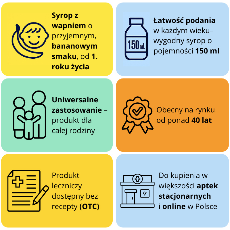 Sanosvit® Calcium ma postać wygodnego w stosowaniu syropu, dzięki czemu jest łatwy do podania i dobrze tolerowany.